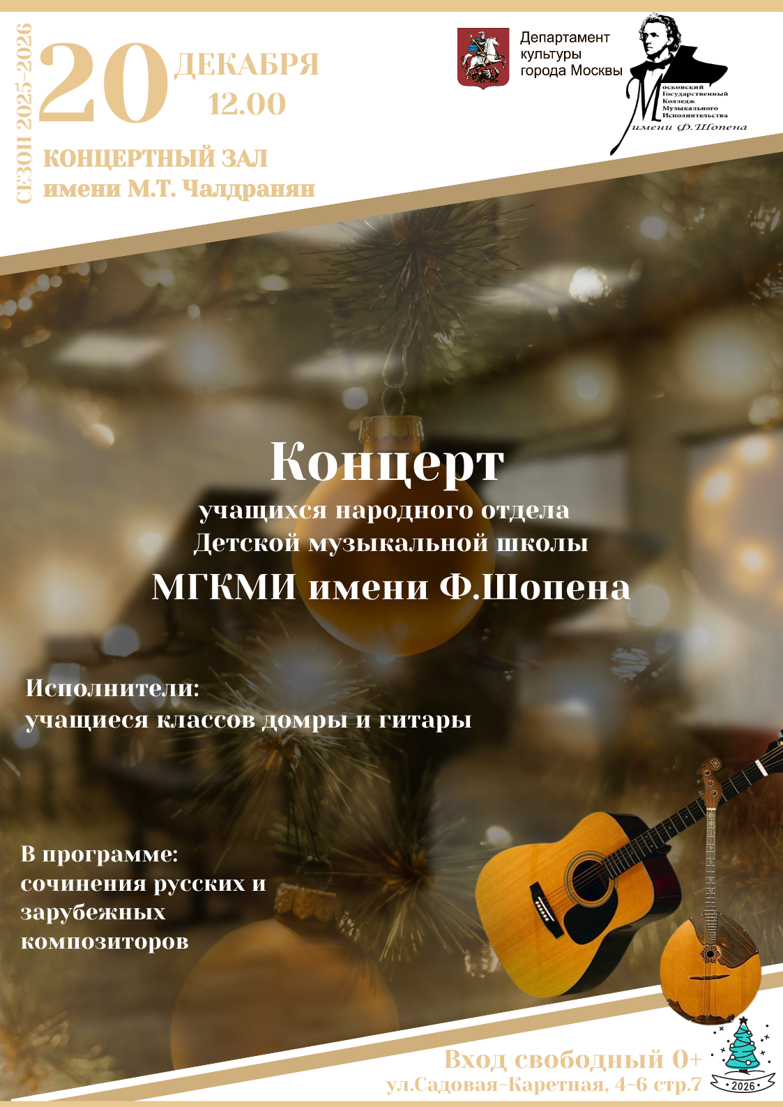 20.12 (суббота) 12.00 | Концерт учащихся отдела народных инструментов ДМШ Концерт учащихся ДМШ Концертный зал им. М.Т. Чалдранян